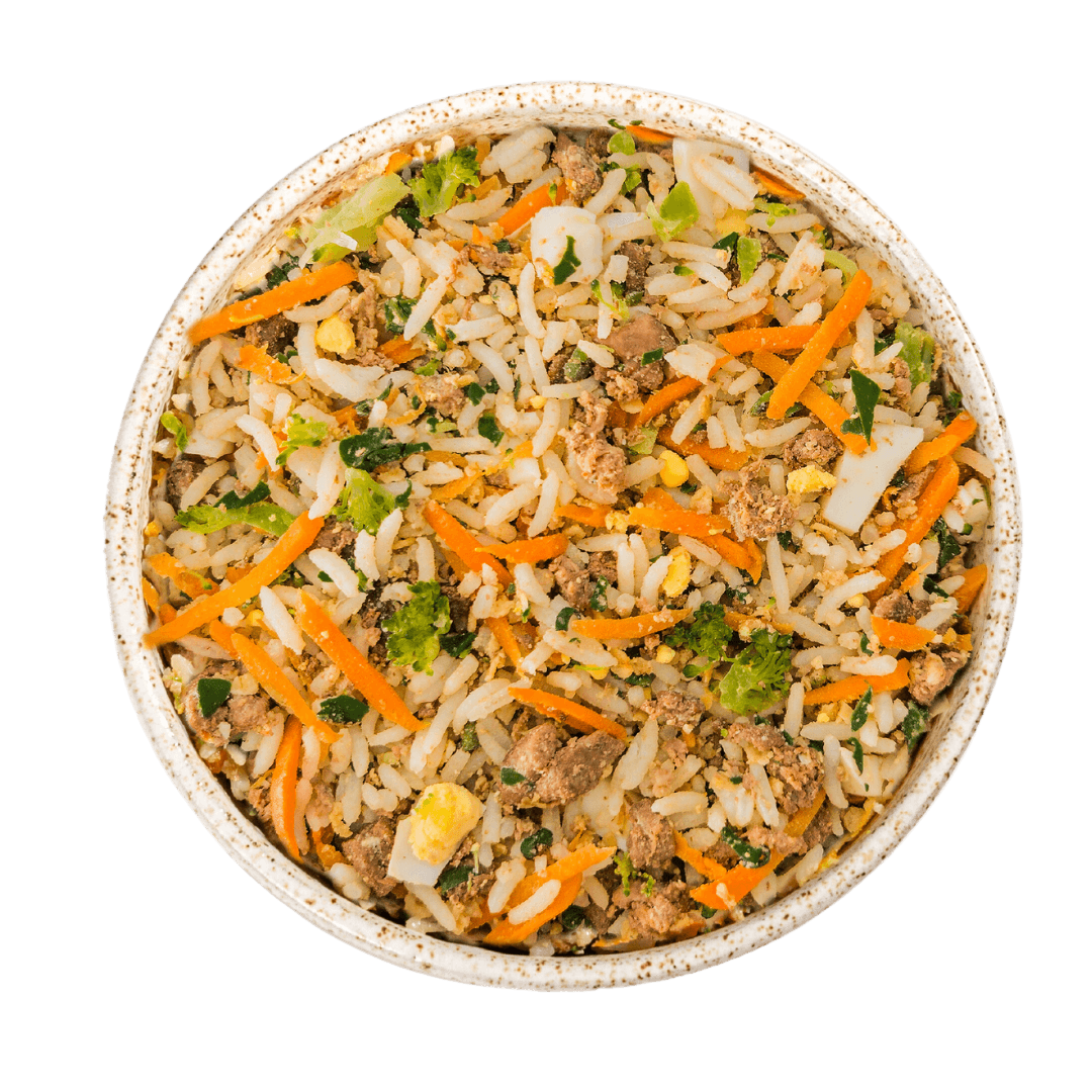 Carne bovina, fígado, arroz branco, brócolis, cenoura, espinafre, ovo, aveia, óleo de girassol, suplementos Pet Protein e Food Dog Sênior.